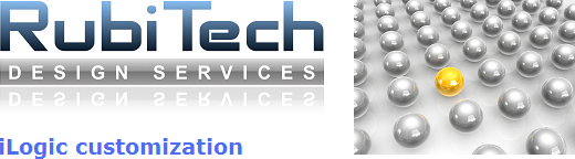 If you have a requirement for iLogic but are concerned about the time it will take you to learn the procedures and convert your existing part files, then why not let RubiTech Design Services carry out the task for you. Simply e-mail or post your part files along with your requirements and I will be happy to supply you with a quick lead-time and a cost effective price for carrying out your conversion.